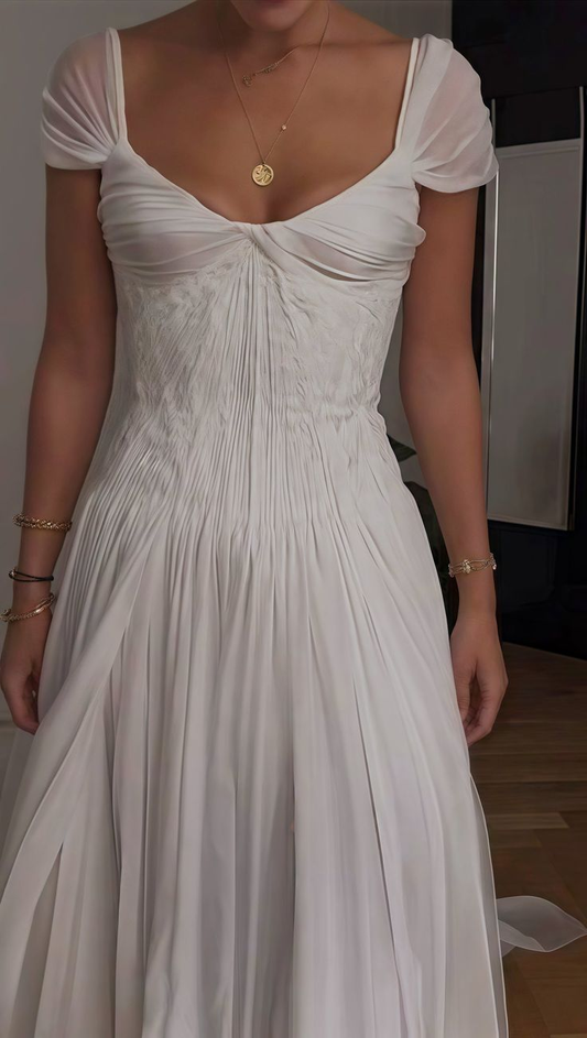 Classy V Neck White Chiffon Long Wedding Dress Bridal Dress D1922