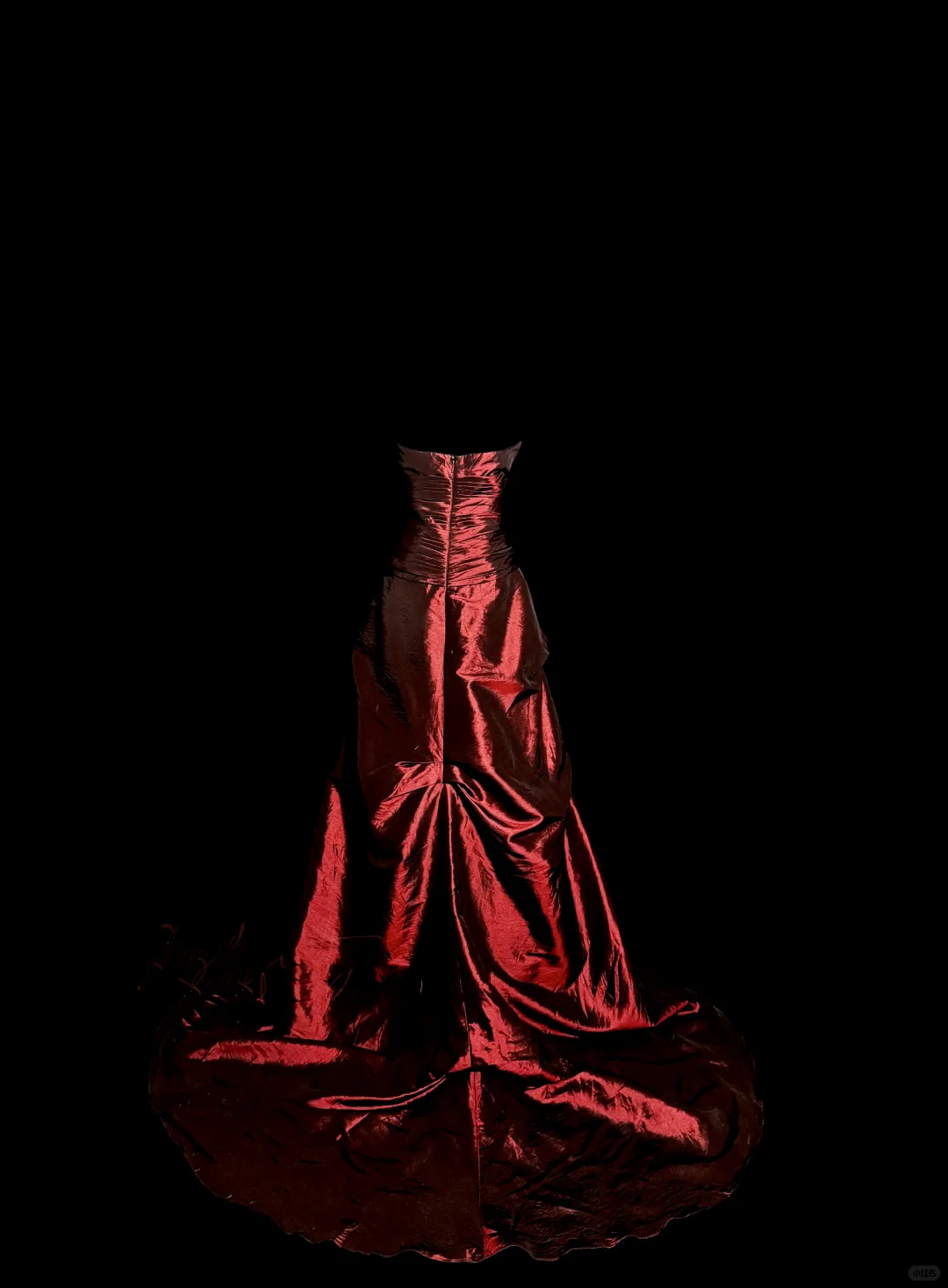Aesthetic Ball Gown Strapless Burgundy Taffeta Prom Dress Ruffle Long Party Dress SD2942