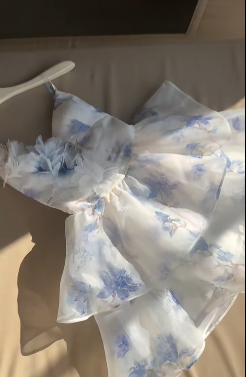 Beautiful Blue Chiffon Print Floral Short Holiday Dress Spaghetti Straps A Line Homecoming Dress S405
