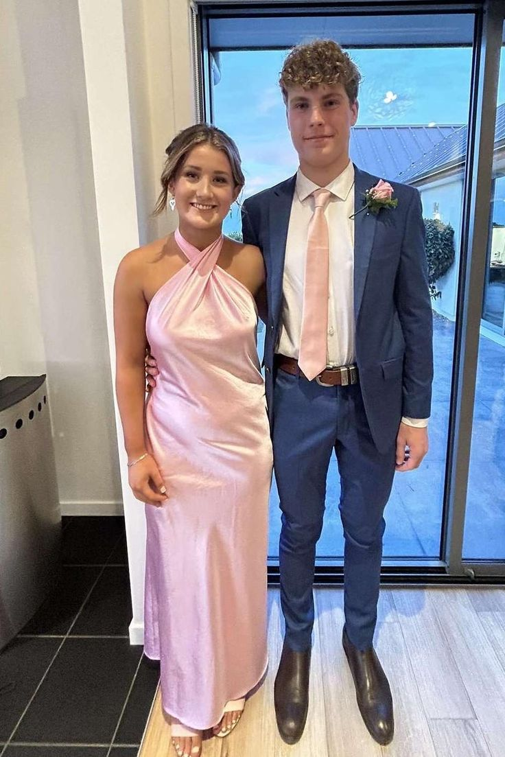 Classy Halter Champagne Backless Sheath Tea Length Bridesmaid Dress Formal Wedding Guest Dress D963