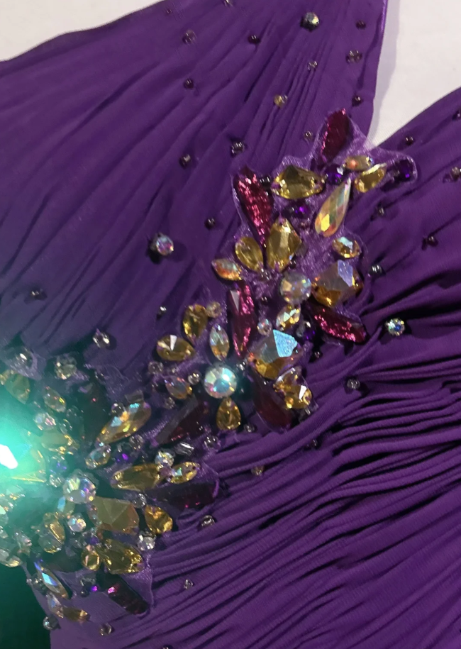 Classy One Shoulder Chiffon Pleated Beaded Mermaid Long Evening Dress Party Gown,Purple Formal Wedding Guest Dress D2060