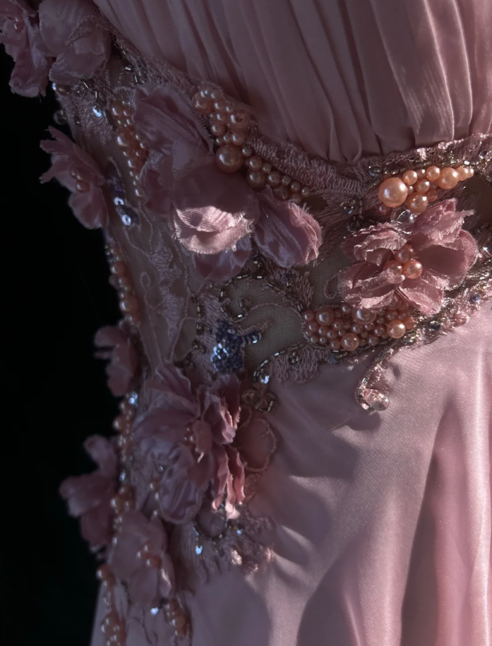 Classy V Neck Chiffon Beaded Appliques Long Evening Dress,Pink Mermaid Birthday Prom Gown Formal Wedding Guest Dress D2020