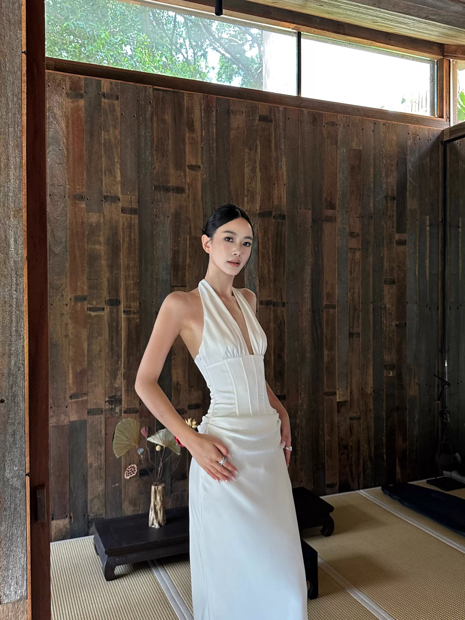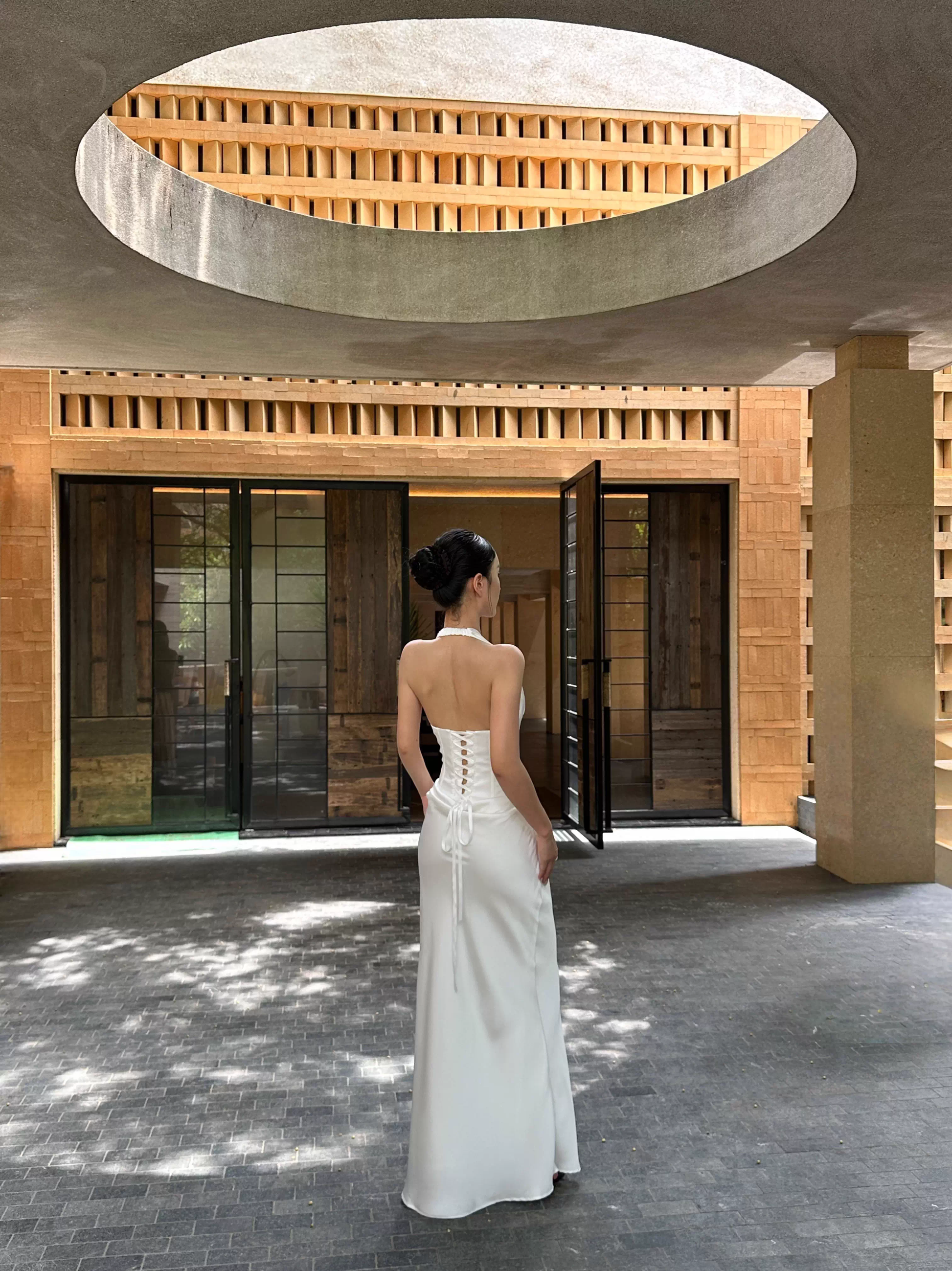 Classy White Halter Satin Mermaid Long Evening Dress Birthday Prom Dress Party Gown D2088