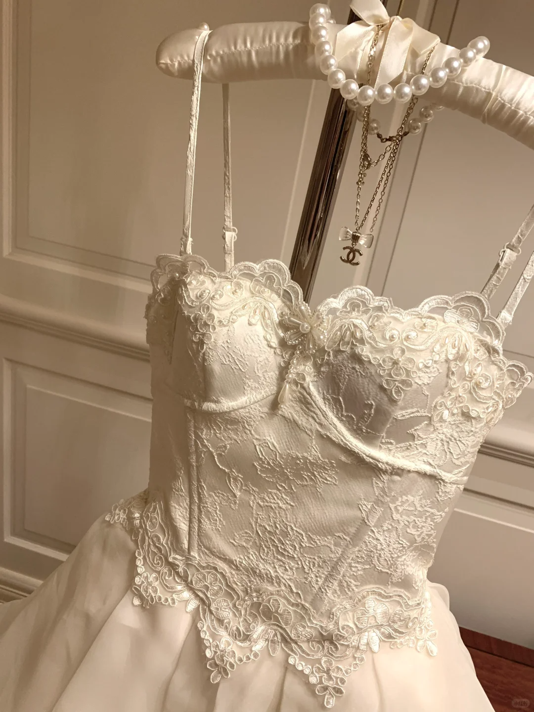 Classy White Tulle Lace A Line Short Prom Dress Formal Birthday Outfits Homecoming Dress D409