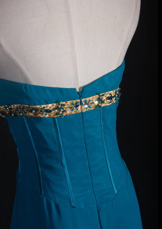 Elegant Blue-green Strapless Chiffon Layered Mermaid Long Evening Dress Formal Wedding Guest Dress With Beads D2258
