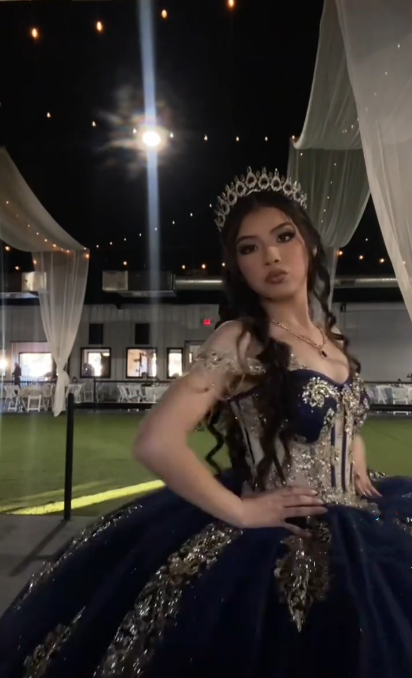 Gorgeous Navy Blue Off The Shoulder Tulle Sequin Sweet 16 Dress Formal Quinceanera Dress D1049
