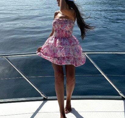 Pretty Pink Print Floral Layered A Line Mini Prom Dress Strapless Graduation Homecoming Dress S467