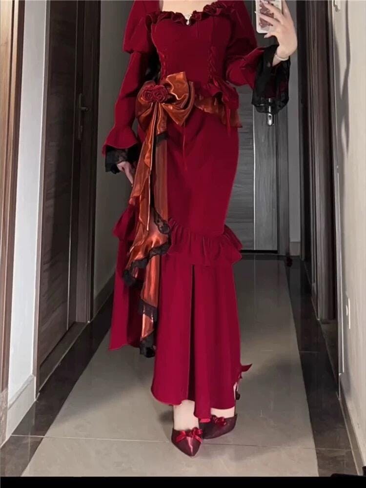 Princess Mermaid Sweetheart Lolita Dress Christmas Dress Burgundy Birthday Dresses SD1131