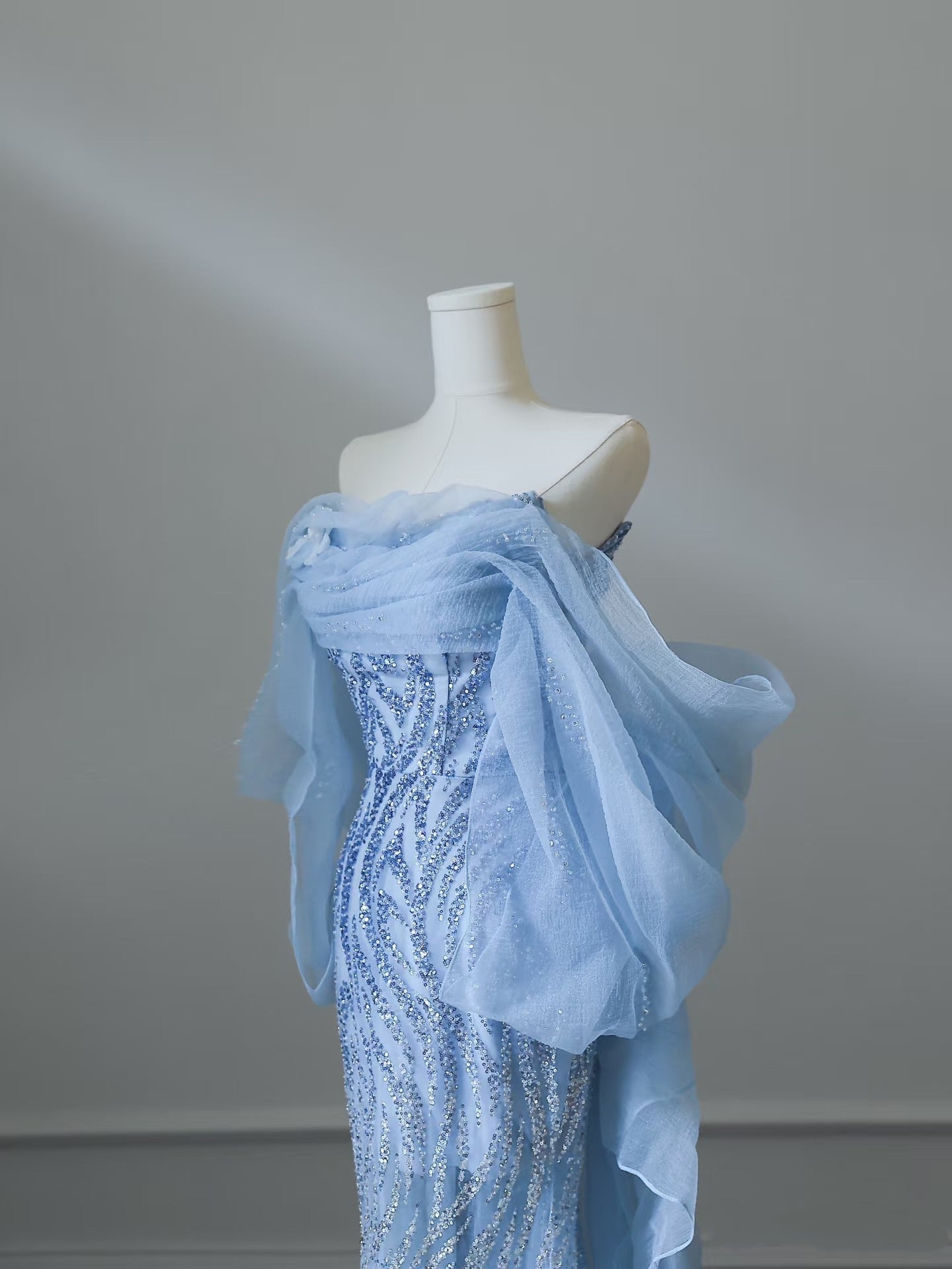 Sexy Mermaid Off The Shoulder Blue Sequin Long Prom Dresses Evening Gowns S3847