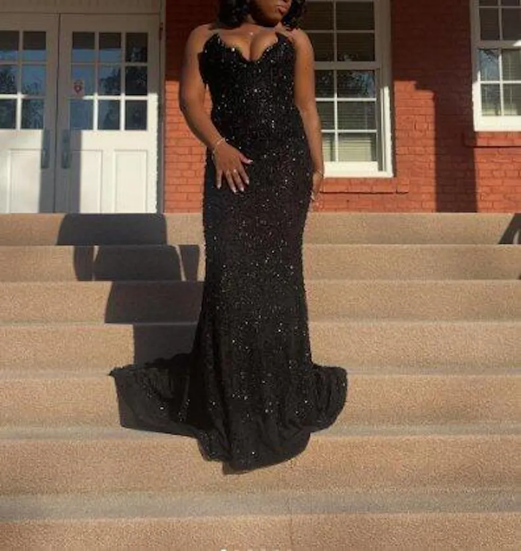 Sexy Mermaid Sweetheart Sequin Slit Black Long Prom Dresses Party Dress SD2291