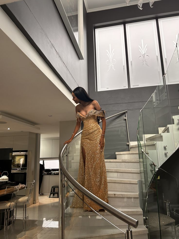 Sparkly Off The Shoulder Sequin Beaded Mermaid Evening Dress Gold Long Birthday Party Dress D1983