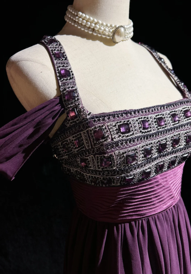 Stylish Spaghetti Straps Satin Beaded A Line Long Wedding Guest Dress,Purple Long Evening Dress Party Gown D2068