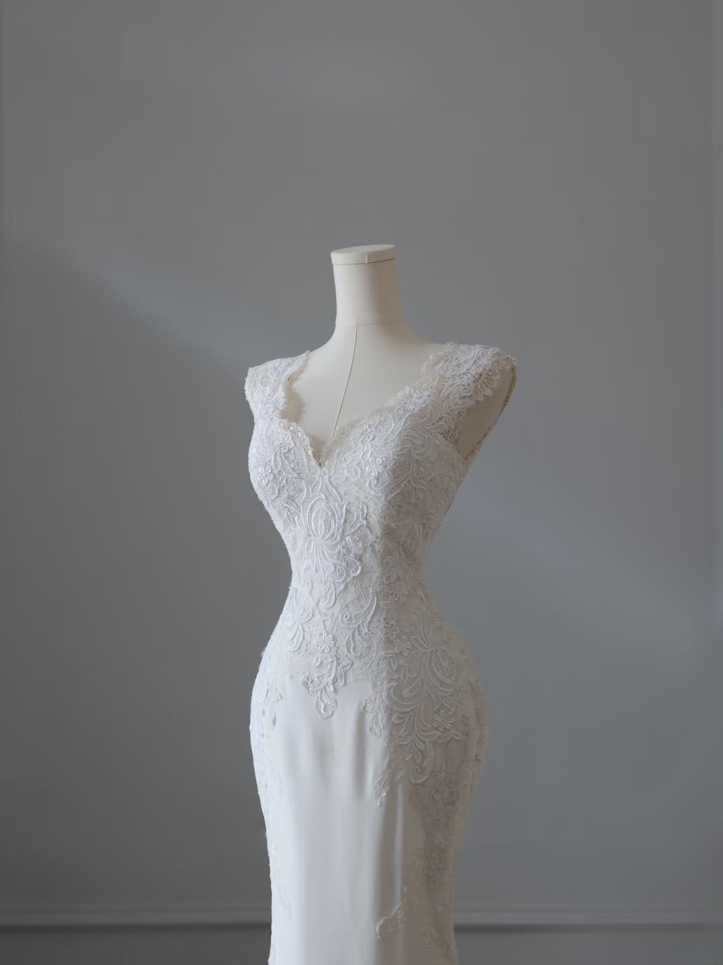 Timeless Mermaid V Neckline Satin Ivory Long Wedding Dress Bridal Dresses SD2496