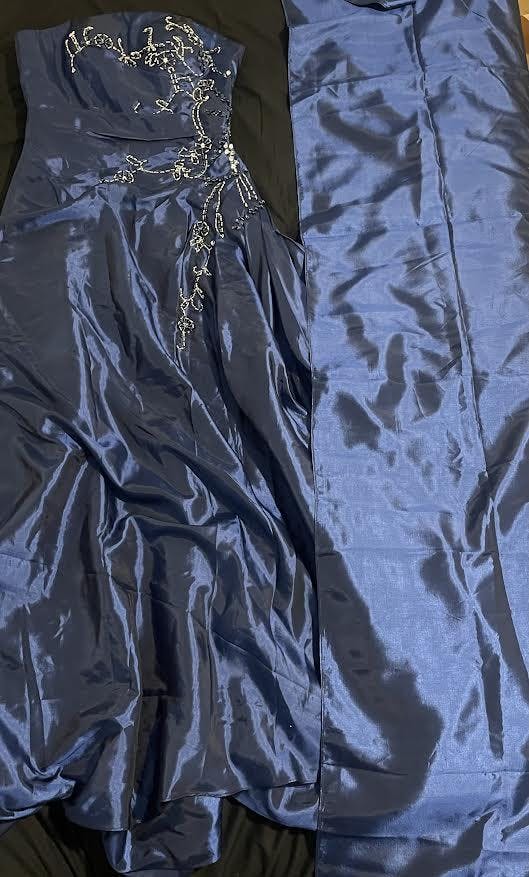 Vintage Ball Gown Strapless Navy Blue Satin Long Prom Dresses Party Dress SD1343