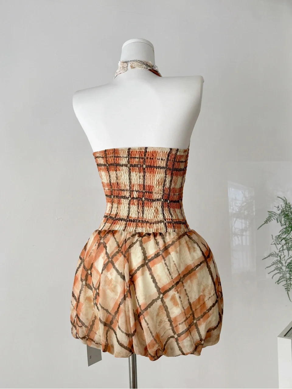 Vintage Halter Lace Neckline Vacation Dress Short Birthday Dress S319