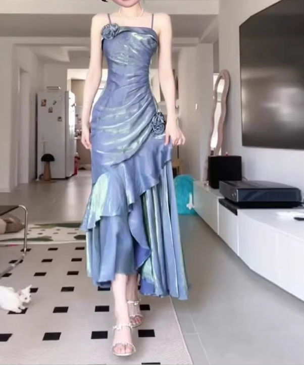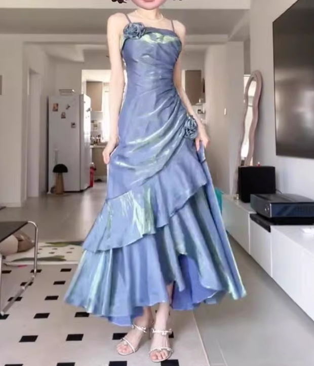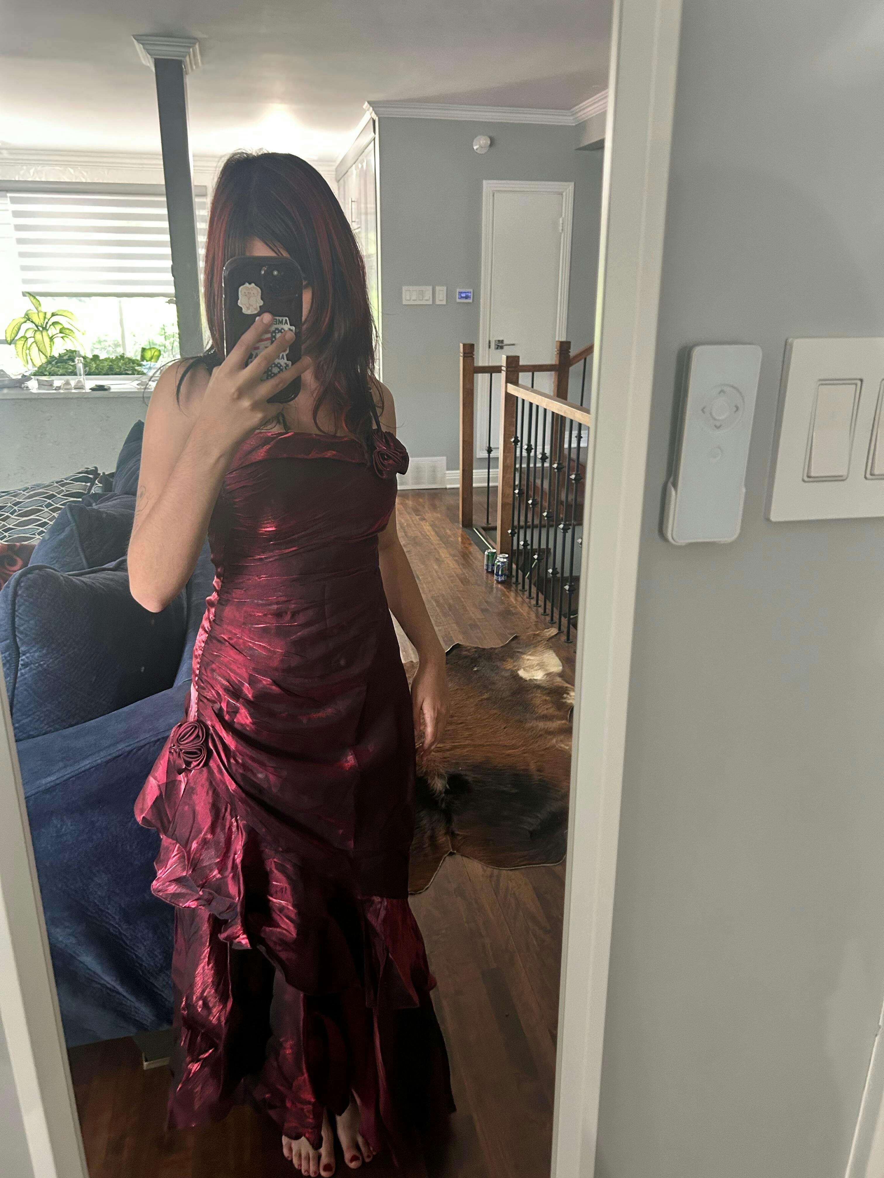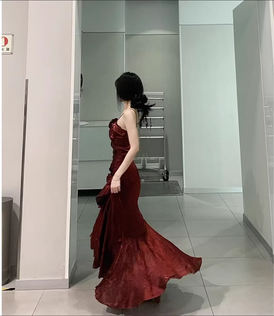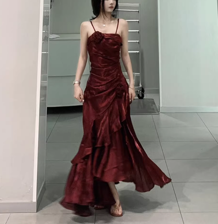 Vintage High Low Spaghetti Straps Burgundy Long Party Dresses Birthday Outfits SD451