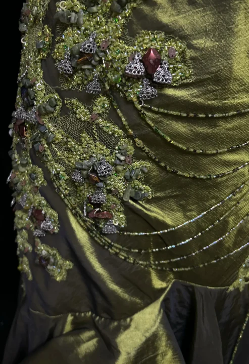 Vintage Spaghetti Strap Olive Green Satin Beaded Mermaid Long Prom Dresses Formal Prom Gown D880